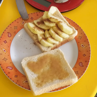 2 tranches de pain de mie 1/2 pomme caramel au beurre salé (recette maison en fin de page) cannelle