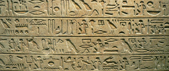 Les hiéroglyphes ne fonctionnaient pas comme notre alphabet occidental. Les symboles pouvaient correspondre à des sons simples ou plus complexes voire à des mots entiers. Les noms propres étaient, quant à eux, écris dans des cartouches.