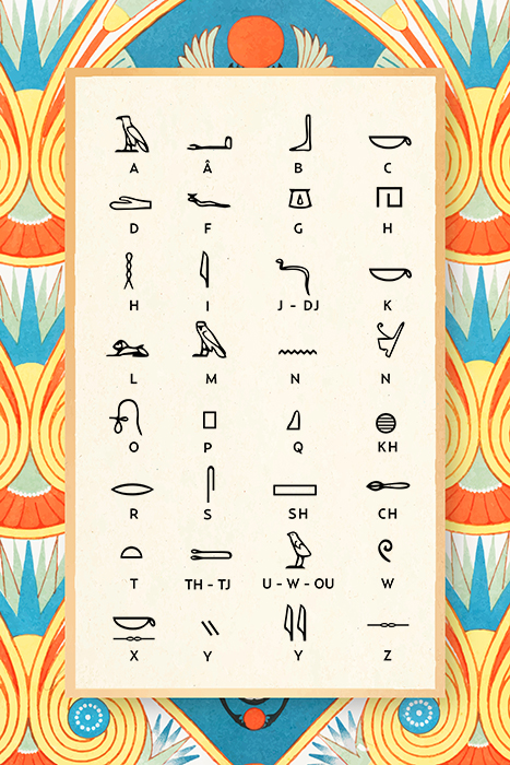 Mais que donnerait votre prénom en ancien égyptien ? Pour le savoir, utilisez cette retranscription des hiéroglyphes en alphabet !