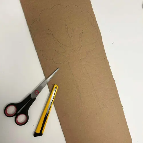 Dessine la forme de l’arbre extraordinaire que tu veux reproduire et découpe sa forme.