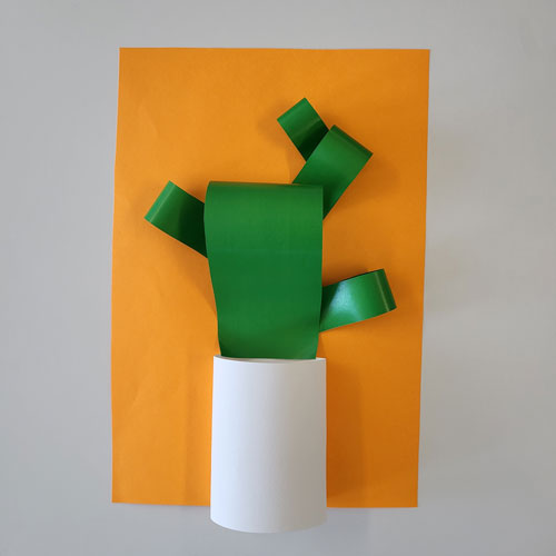 Collez la plus grosse boucle au dessus du rouleau de papier. Il ne reste plus qu’à composer votre cactus avec le reste des boucles !