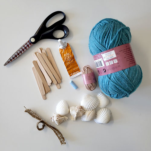 Prenez votre fil de laine et scotchez les bouts sur les bâtonnets.