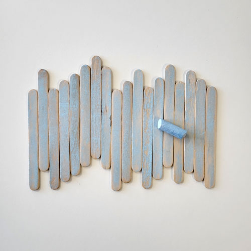 Placez vos bâtonnets en ligne de manière irrégulière. Gardez à part deux bâtonnets.