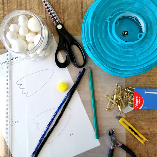 Enroule ta chenille autour de la tige centrale de ta lanterne, et accroches-y ton pompon !
