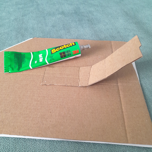 Découpe une petite bande dans le carton qu’il te reste. Elle te servira à faire tenir ta maison debout.