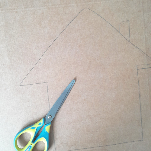 Sur un carton, dessine le contour des maisons et des bâtiments que tu souhaites mettre dans ta rue. Pour que la taille corresponde, tu peux les dessiner en fonction des portes que tu viens de découper.