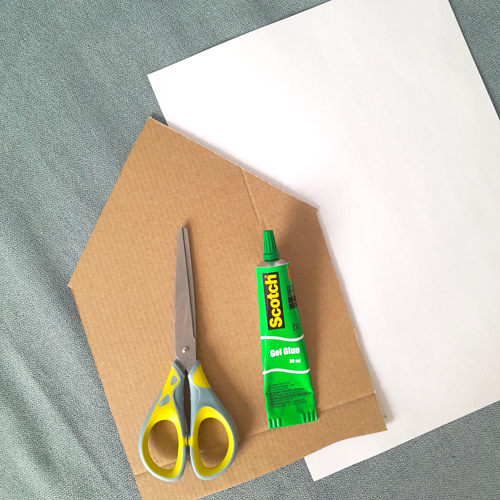 Si tu le souhaites, tu peux coller une feuille blanche de la même forme sur ta maison. Ca sera plus pratique pour la décorer par la suite.