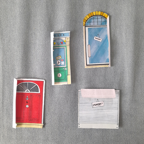 Maintenant, tu peux coller les petits personnages derrière les portes que tu souhaites.