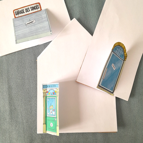 Imprime les deux feuilles à télécharger puis découpe les portes et les personnages.