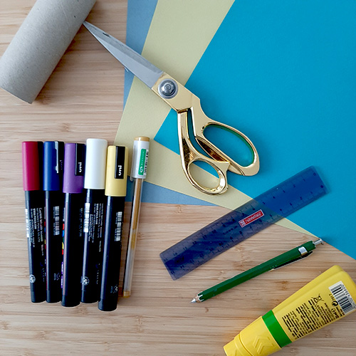 Des petits bâtonnets type glace Des feuilles épaisses, blanches ou de couleur Des ciseaux De la colle liquide De quoi décorer