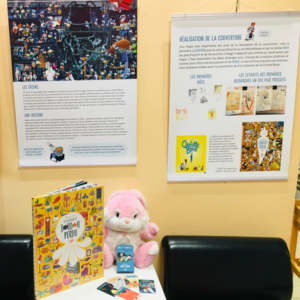 Pour encourager la lecture nous travaillons avec des bibliothèques tout le long de l’année. Nous développons des expositions, ou des ateliers en fonction de thématiques particulières.