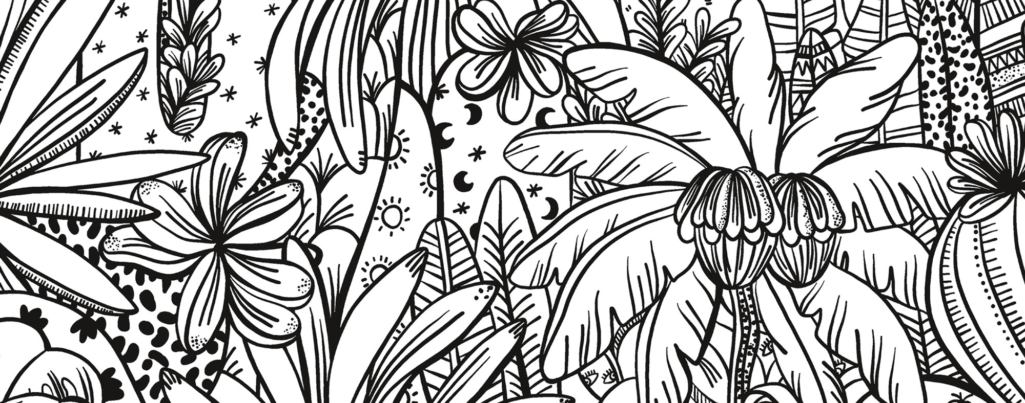 Une jungle colorée envahit maison et appartement avec ce coloriage ! À vos crayons, feutres et POSCA pour apporter de la couleur !