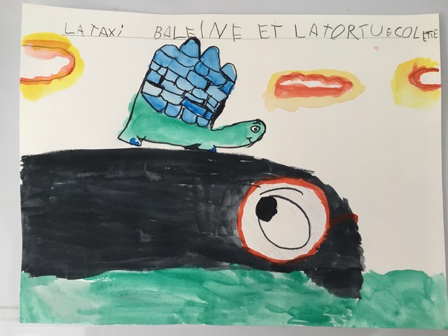 Et Lilou D., 5 ans pour son texte : Voyage autour des îles en Taxi-Baleine »À dos de Taxi-Baleine, je pars en voyage visiter les 5 îles de mon imagination. Mais avant de faire un premier arrêt, je fais monter à bord de ma baleine ma petite soeur.