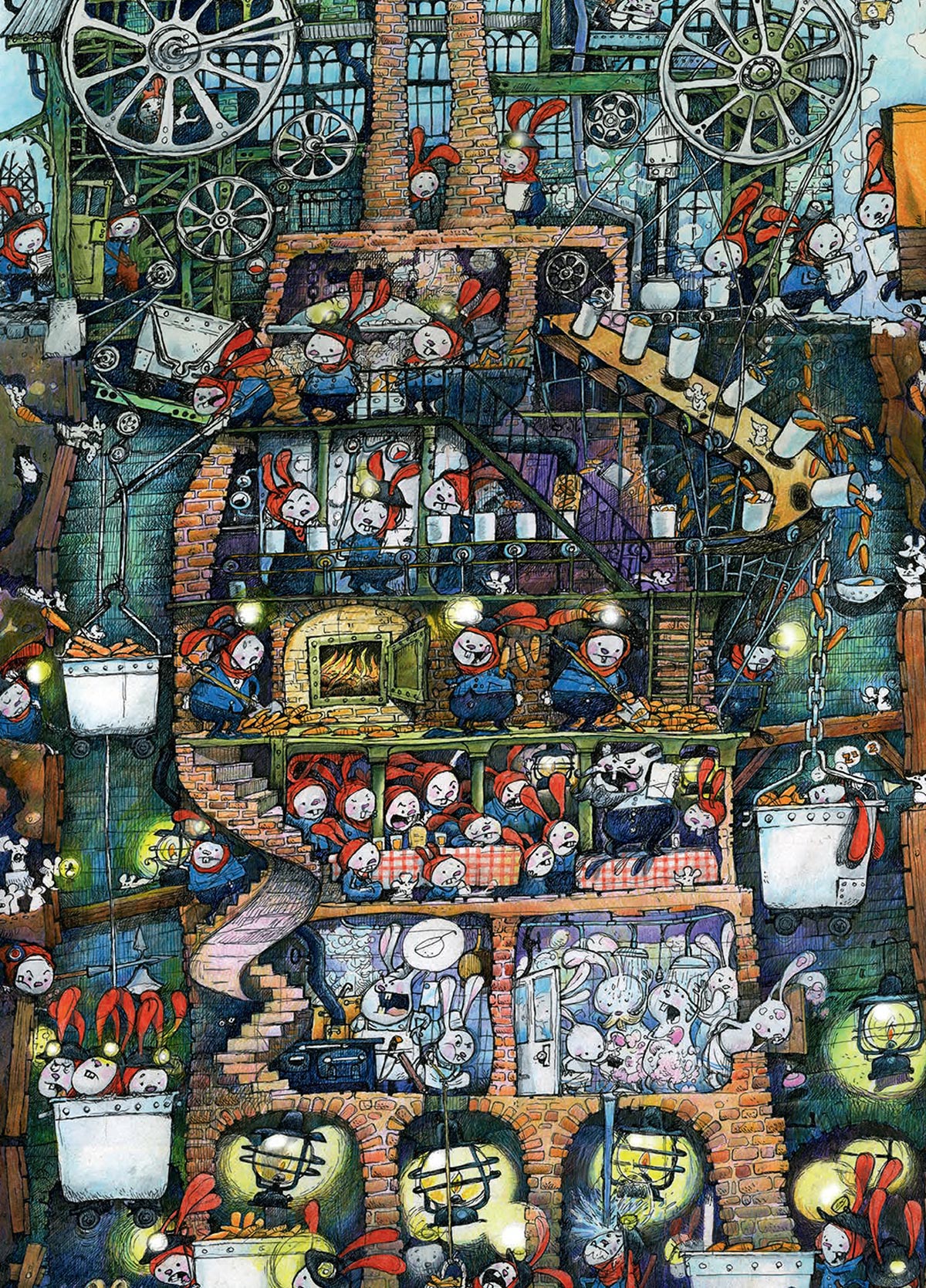 « C’est une image un peu différente des autres. Il n’y a que très peu de carottes, les lapins sont au bord de la folie, et la Carotte Bleue n’est pas difficile à trouver. Je voulais que la folie et la peur se lisent sur le visage des personnages, une sorte de vaisseau de l’angoisse qui aurait illustré la légendaire malédiction des lapins sur un bateau. »