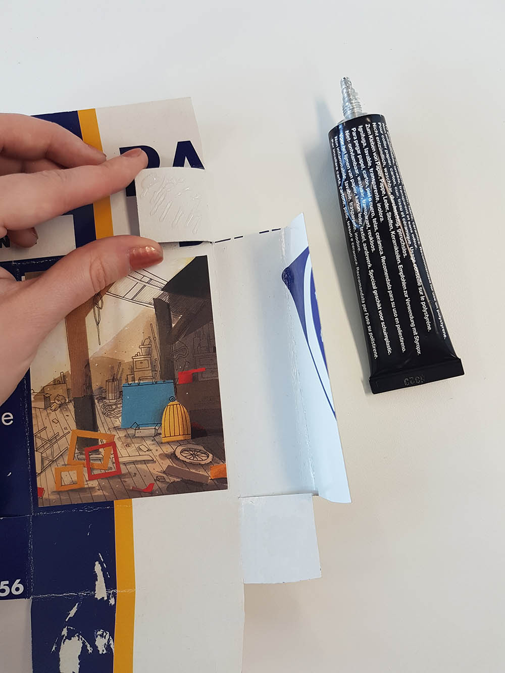 Du carton souple (vous pouvez réutiliser un ancien emballage, par exemple) De la colle liquide et de la colle en stick Des ciseaux Une règle Un crayon et une gommeTéléchargez les fonds et les personnages à découper !
