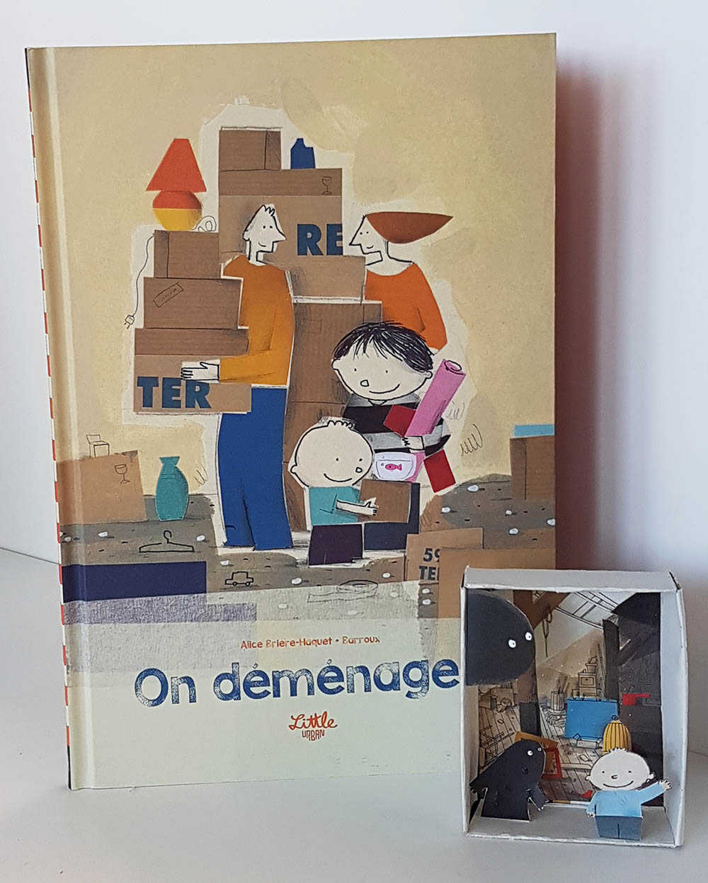 À vendre petite maison qui renferme les heureux moments partagés avec Papa, Maman, mon grand frère et moi… Un texte génial d’Alice Brière-Haquet conçu comme une petite annonce immobilière mêlé au graphisme tendre et coloré de Barroux pour appréhender un déménagement en douceur.