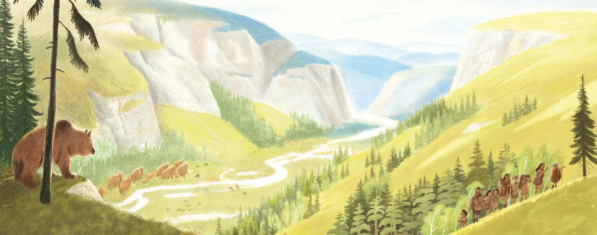 L’enfant de la Vallée parle de nos ancêtres, les Homo Sapiens, et de nos cousins éloignés, appelés les Hommes de Néandertal. Il y a trois ou quatre centaines de milliers d’années, nos ancêtres et les leurs ont pris des chemins différents. Tandis que les nôtres se sont installés dans ce qui est aujourd’hui l’Afrique, les Hommes de Néandertal ont émigré dans ce qui est aujourd’hui l’Europe, la Russie et le Moyen-Orient.