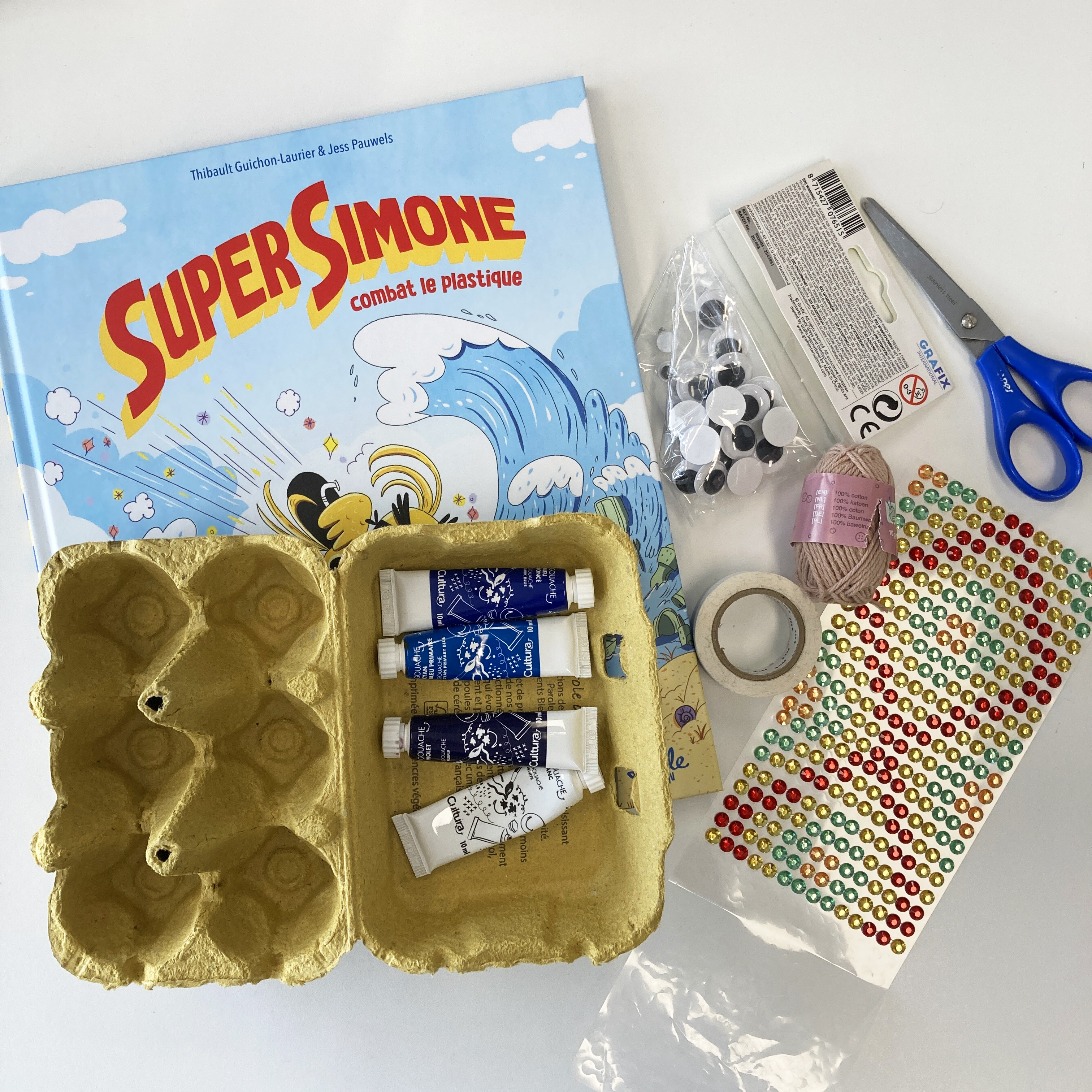 Avec Super Simone, recycle tes boîtes d’œufs pour en faire de belles guirlandes poissons. Comme Super Simone, combats la pollution et réutilise les déchets qui se trouve chez toi.