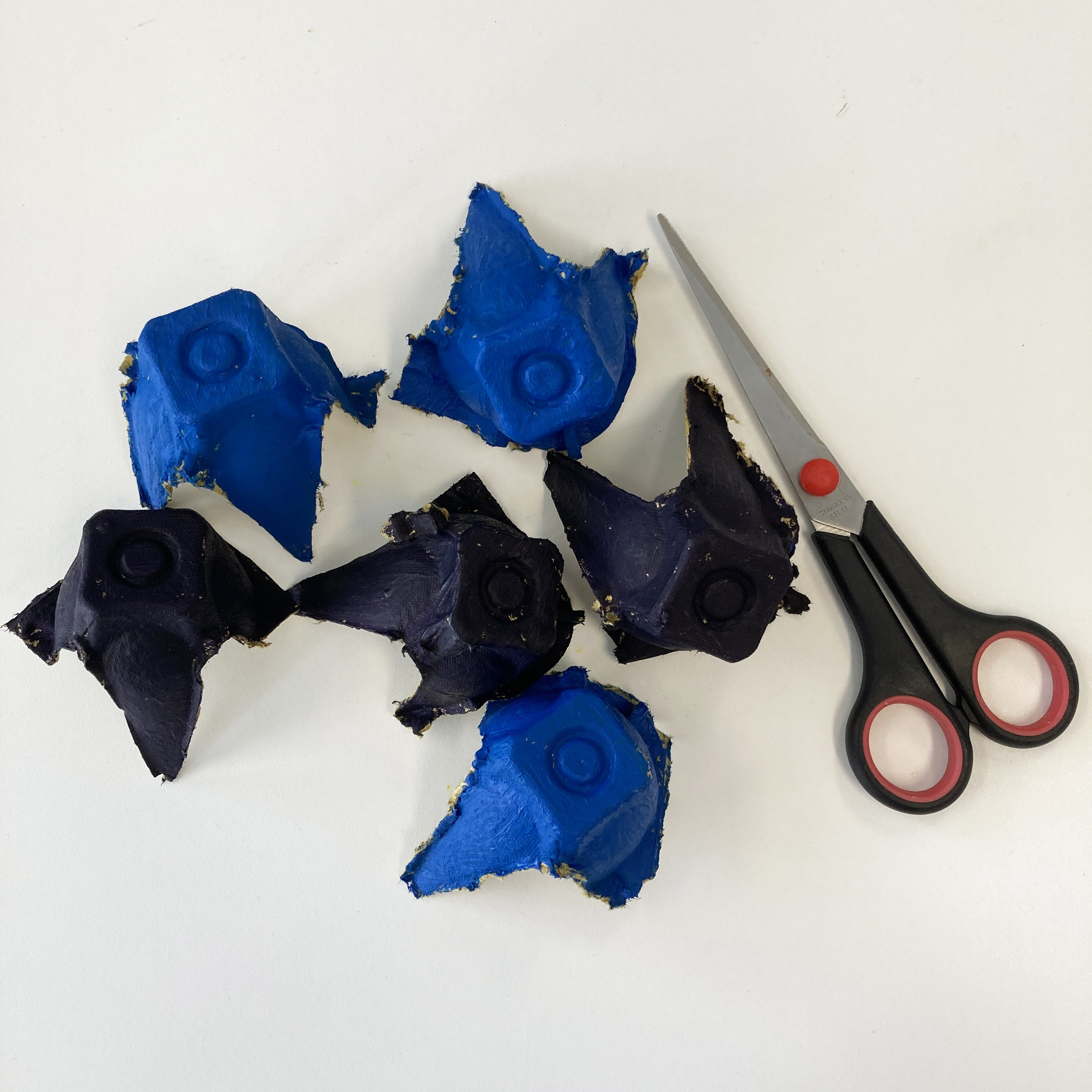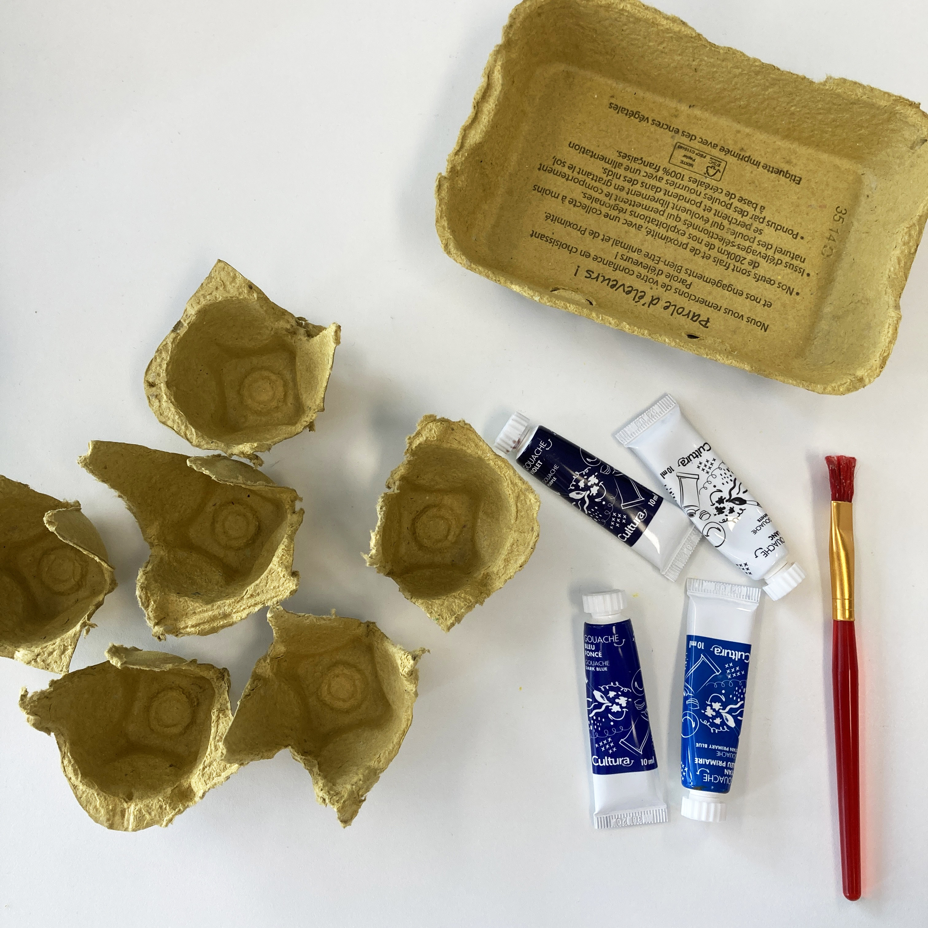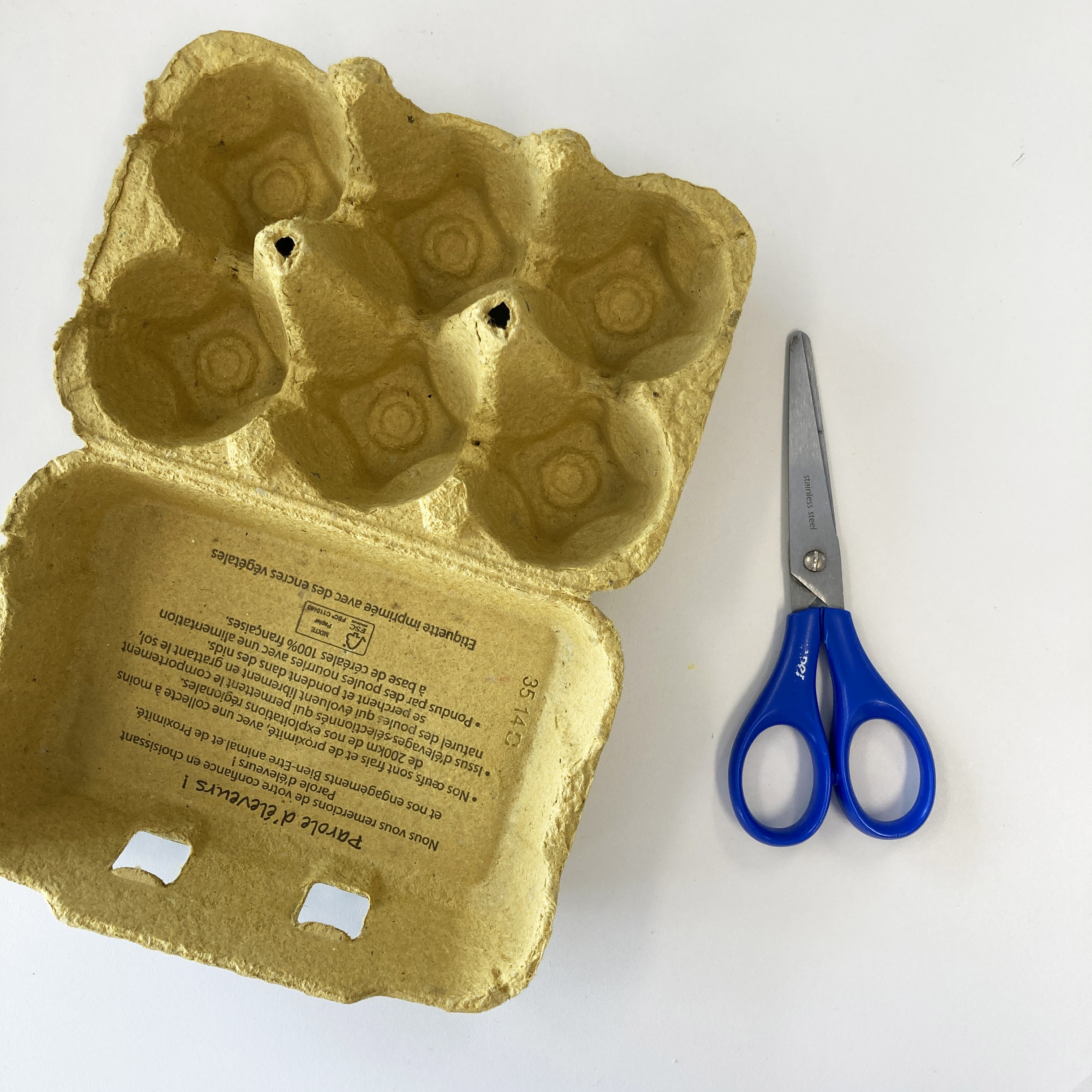 Découpe chaque alvéole de la boîte d’œufs avec des ciseaux. Fais toi aider d’un adulte si besoin.
