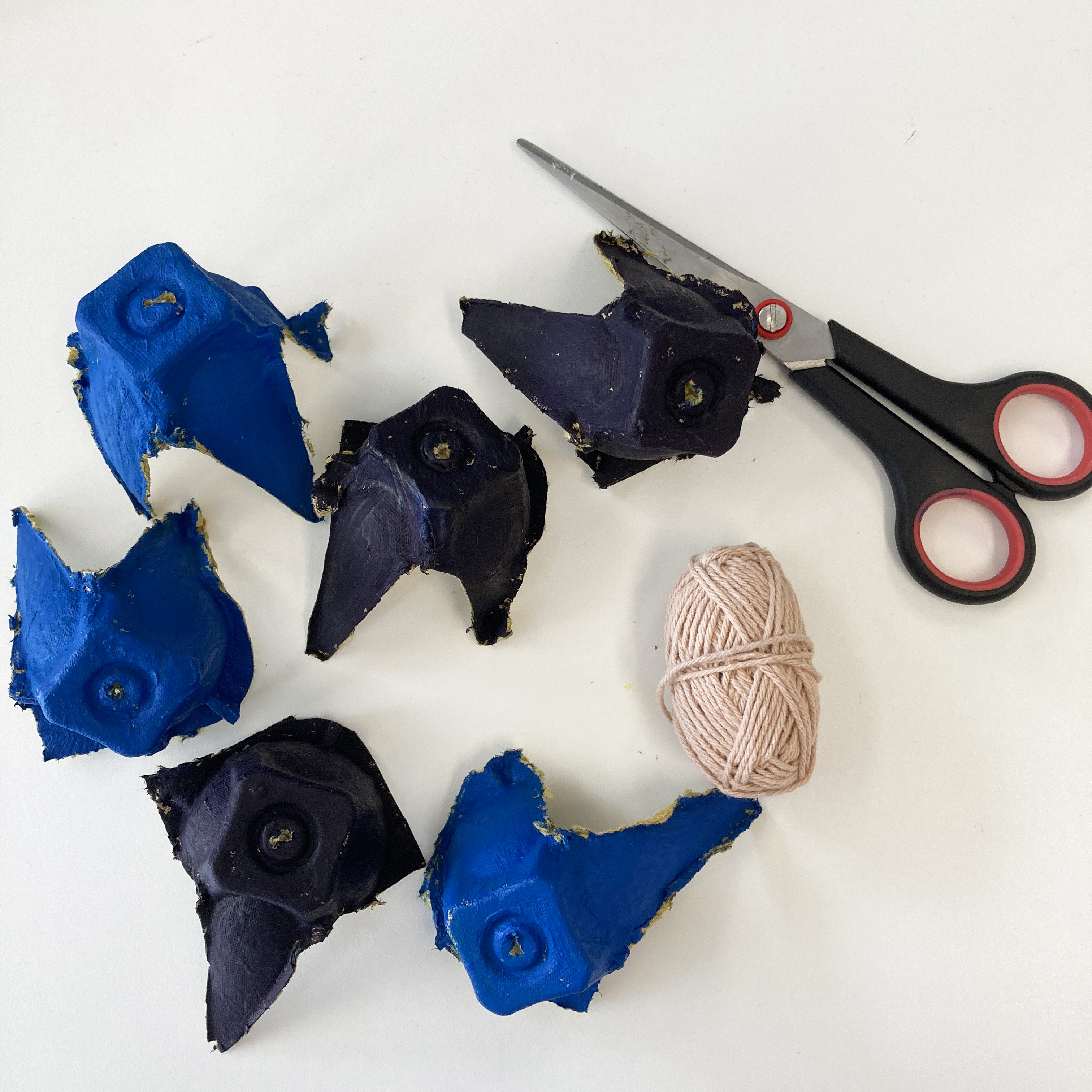 Ensuite, prends un long bout de ficelle, et fais les passer dans les trous de chaque alvéole. Tu peux faire des nœuds entre chaque alvéole pour qu’elles ne s’emboîtent pas.