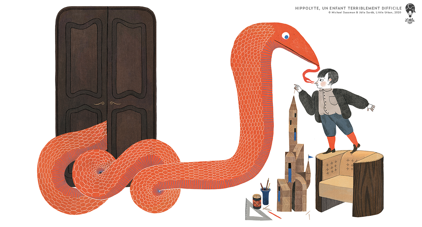 Pauvre Hippolyte, avalé par un serpent et ses parents ne le croient même pas ! Affichez les magnifiques illustrations de Jùlia Sardà sur votre ordinateur ou votre smartphone !