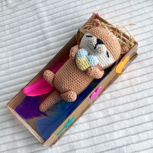 Mets ta peluche dans son beau lit ! (Tu peux même rajouter une couverture si tu as peur qu’elle ait froid).