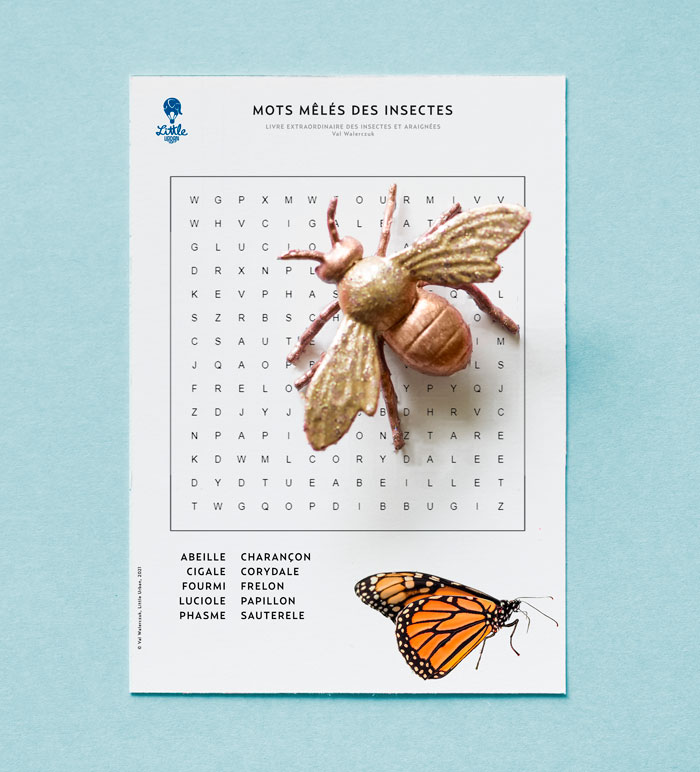 Saurez-vous retrouver les petites bêtes dans ces mots mêlés ? Luciole, abeille ou monarque, ils sont bien cachés !