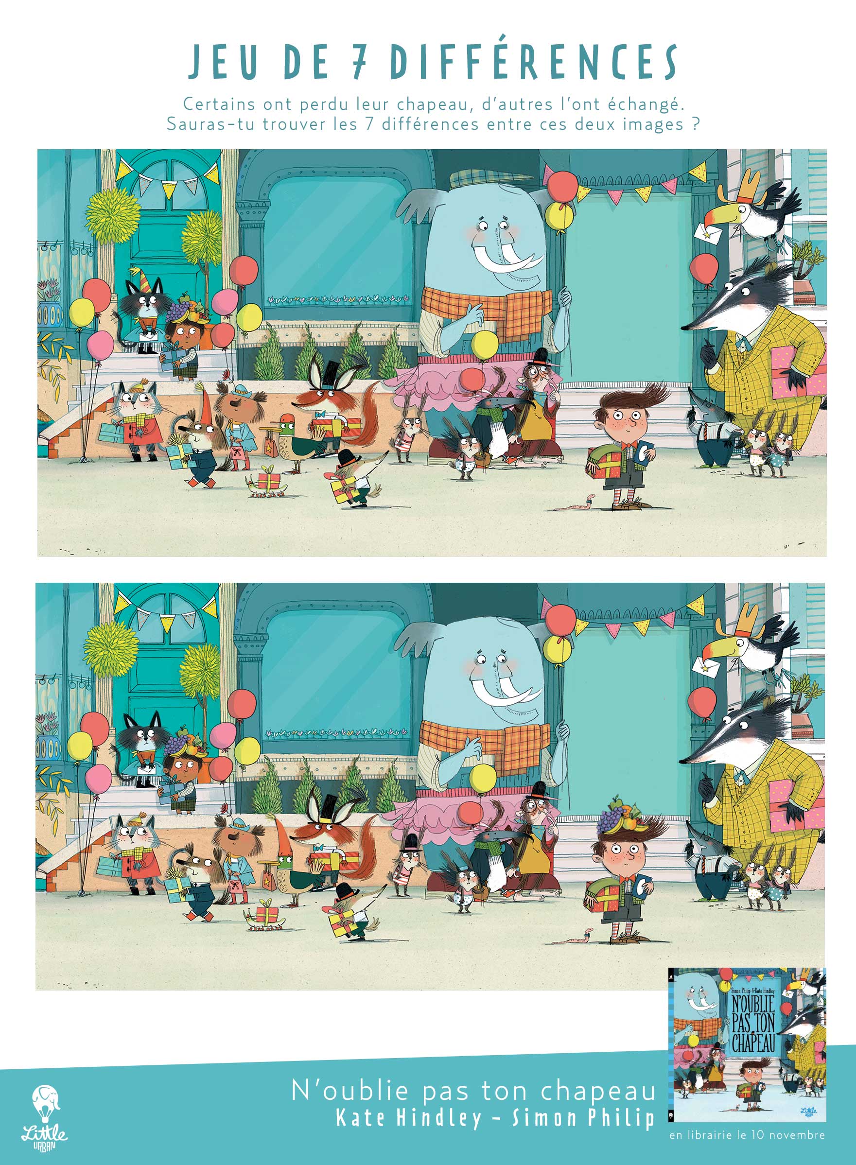 Une fête ? Un impératif ! N’oublie pas ton chapeau ! Sauras-tu retrouver les 7 différences entres ces deux illustrations ?
