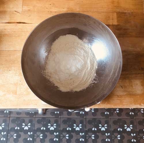 2. Mélange la farine, la levure et le sel dans un saladier.