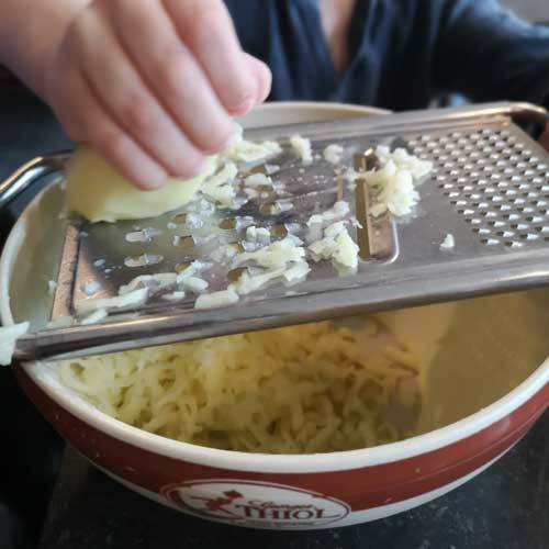 Râpez-les dans un saladier (attention aux doigts !)