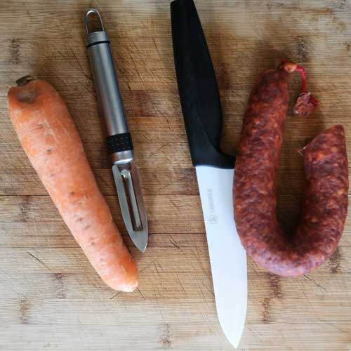 Coupez des tranches de chorizo en rondelle.