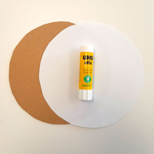 Découpe un cercle de la même taille dans la feuille blanche et dans le carton.