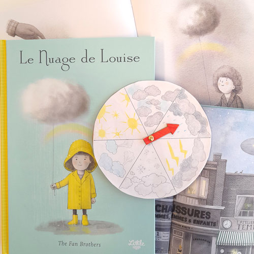 Dans cet atelier, accompagne Louise et son nuage. Fabrique ta propre roue de la météo et dis-nous quel temps il fait dehors !