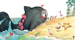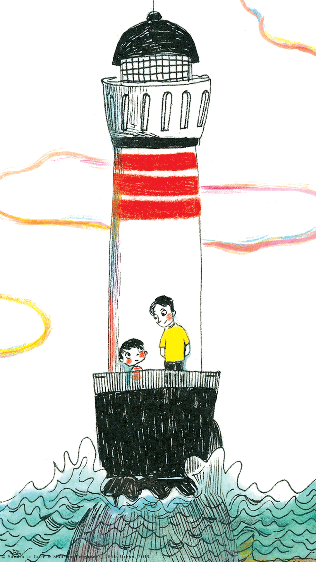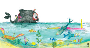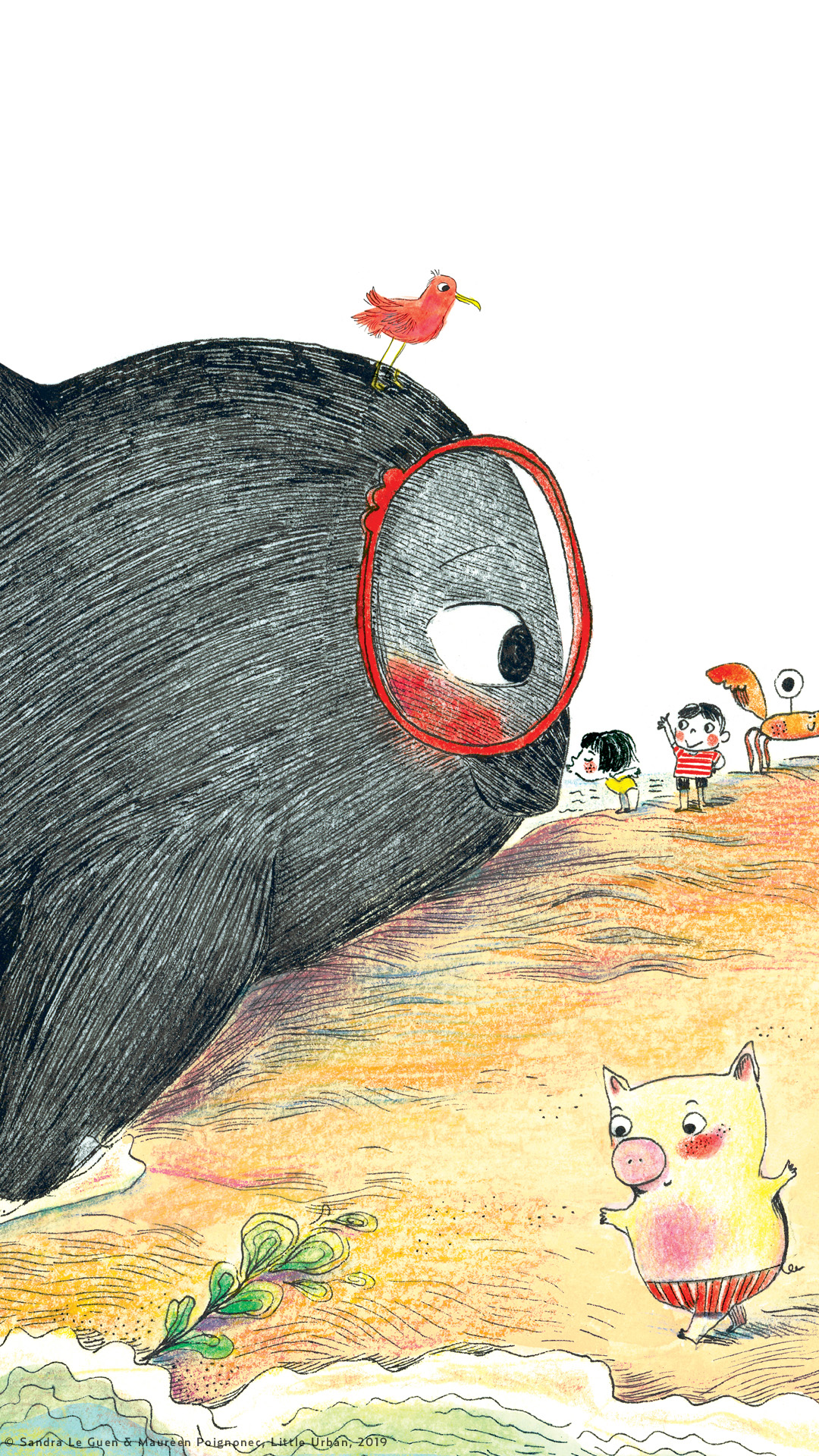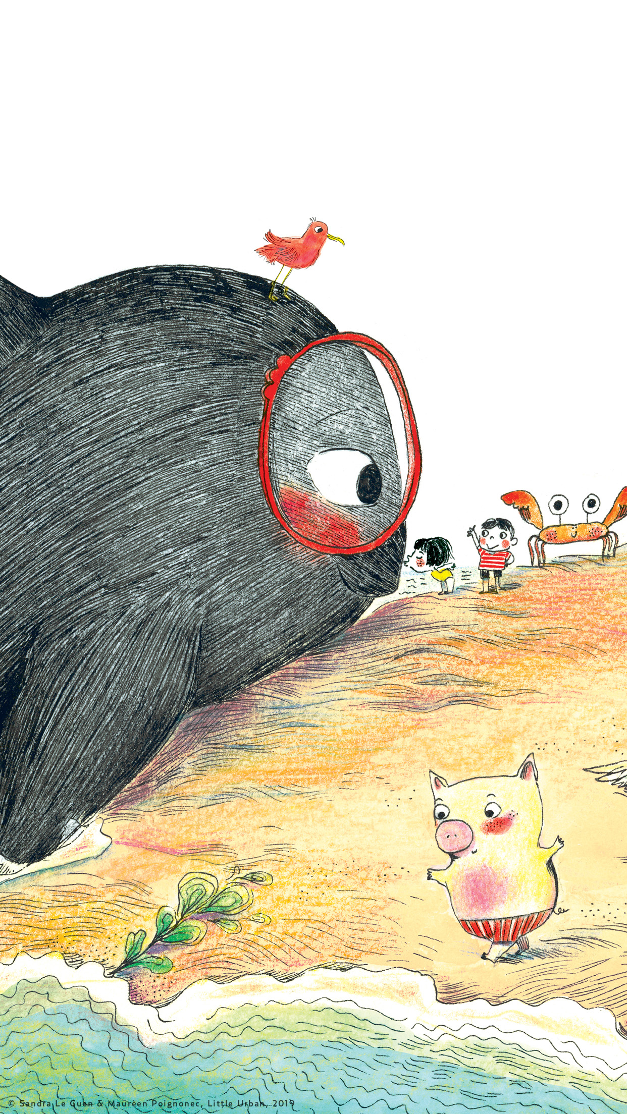 La baleine sourit. La baleine est attendue. Elle aime tellement être taxi. D’une rive à l’autre, elle fait traverser Juno, puis son grand-frère, Majé. Ensemble, ils glissent lentement sur l’océan, pendant neuf mois. Les enfants ont besoin du taxi-baleine. Cela ne durera pas : ils grandissent si vite.
