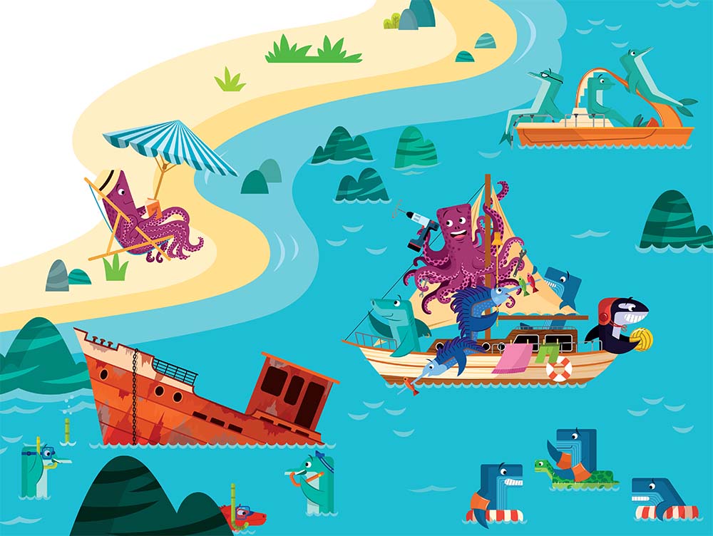 Un Dragon Rouge fait le tour du monde avec pour seuls accessoires un planisphère et sa bonne humeur. Parfois bien caché au cœur de paysages peuplés d’une foule d’animaux, saurez-vous le retrouver ? Un poster abécédaire animalier accompagne la sortie.